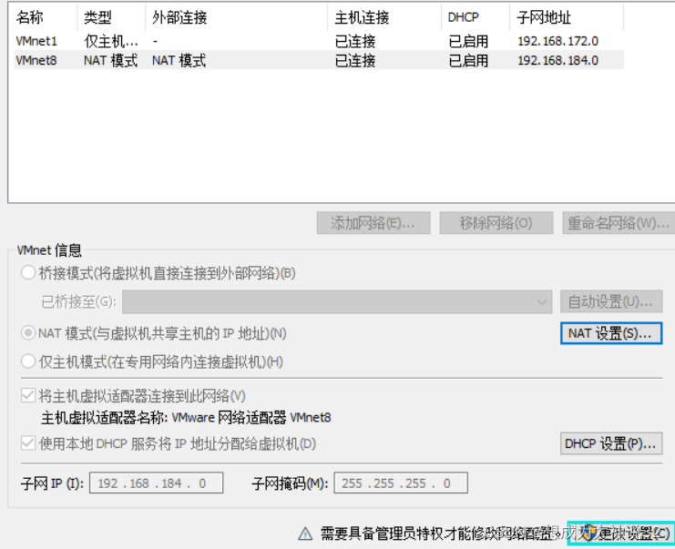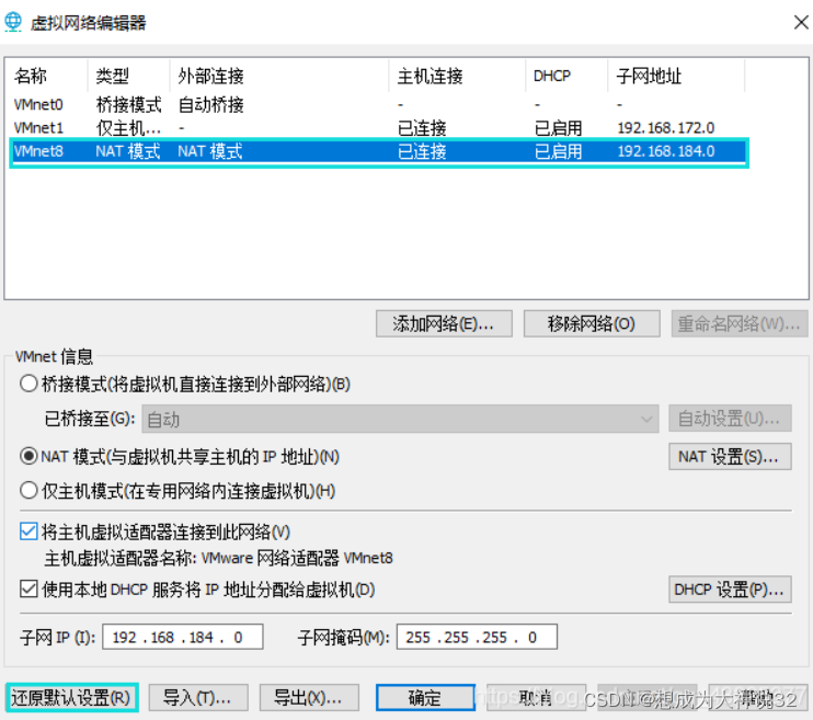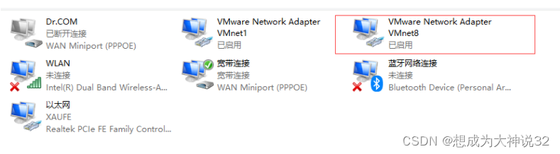 做完以上步骤以后就可以使用Xshell连接虚拟机了,但是下一次启动了之后发现又连接不上了,此时只要把VMnet8禁用,然后再启用就可以正常连接了