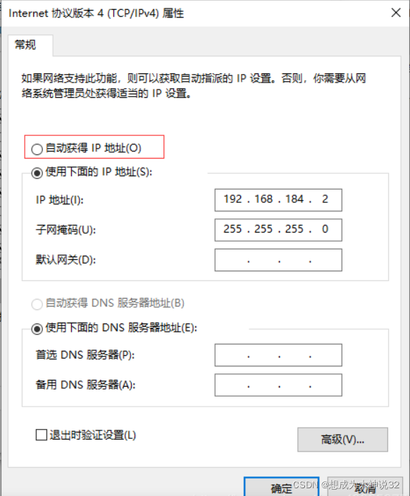 但是这样太麻烦了,我们点开VMnet8的属性查看一下,发现这个时候默认选择的是自动获得IP地址(我这里是已经更改选择了第二个了),这个时候我们只需要选择使用下面的IP地址,然后把IP地址和虚拟机的NAT里的网关IP填上去就可以了